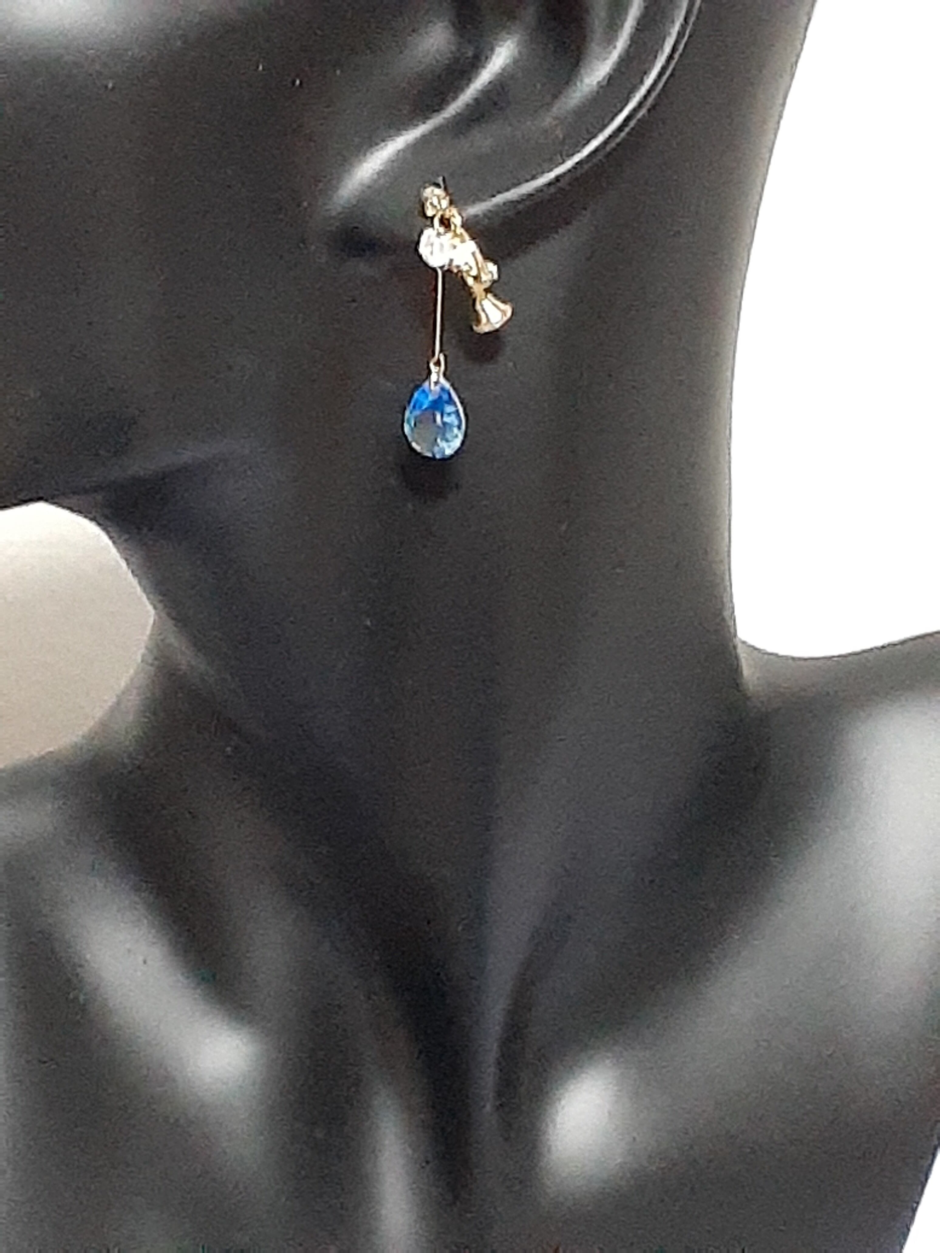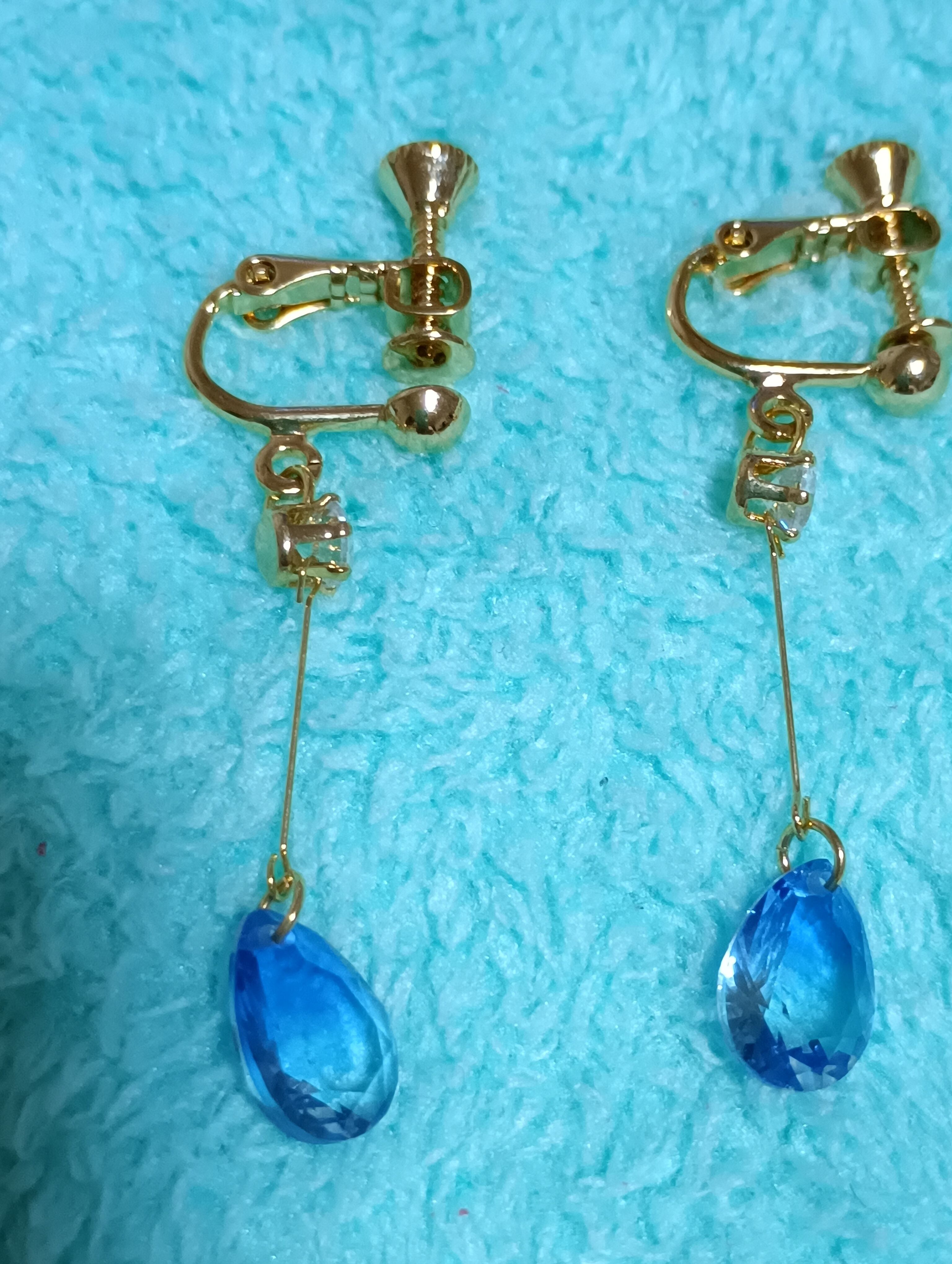 商品名:グラデーション雫型ガラスストーンイヤリング ブルー色