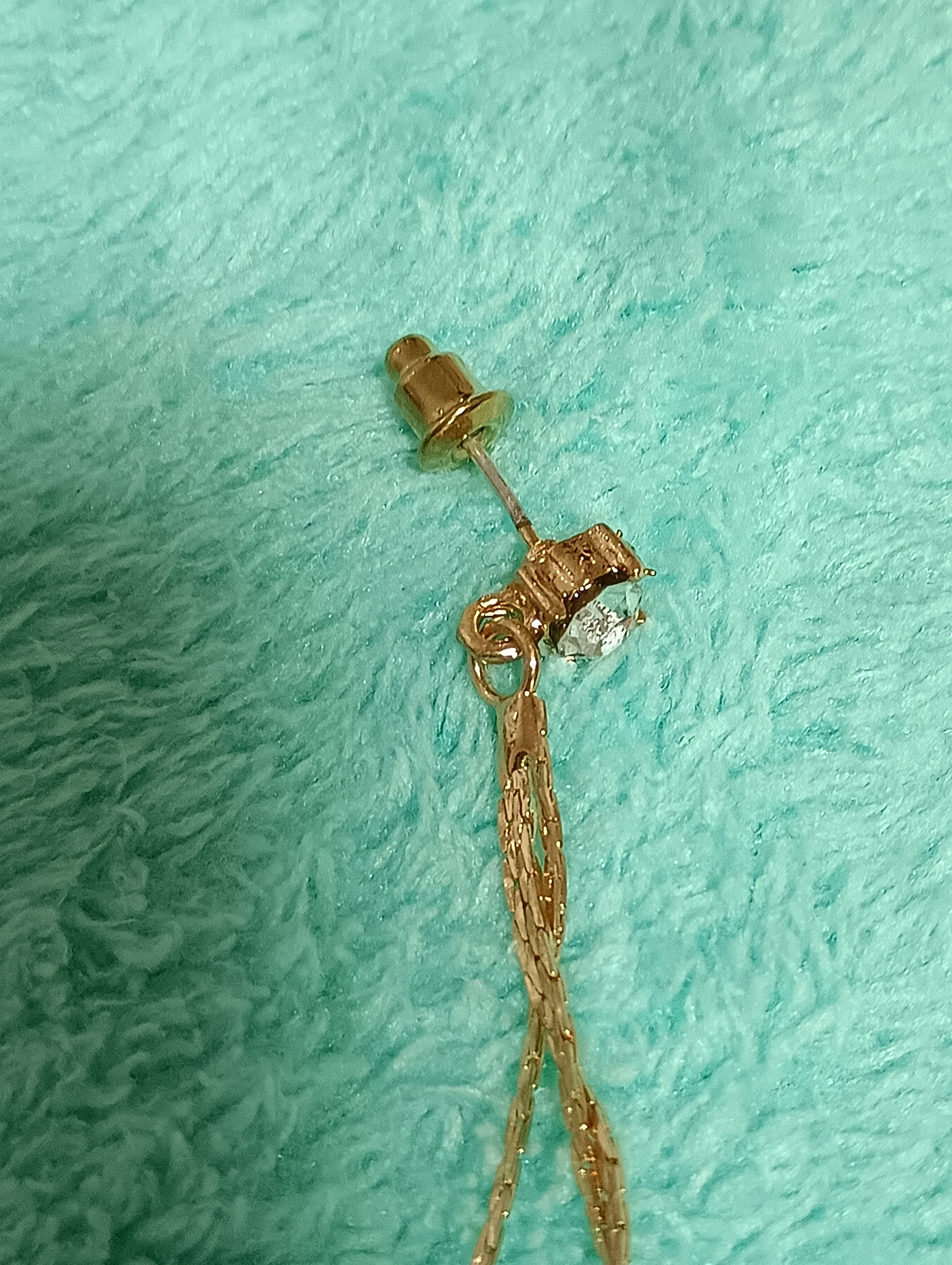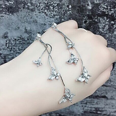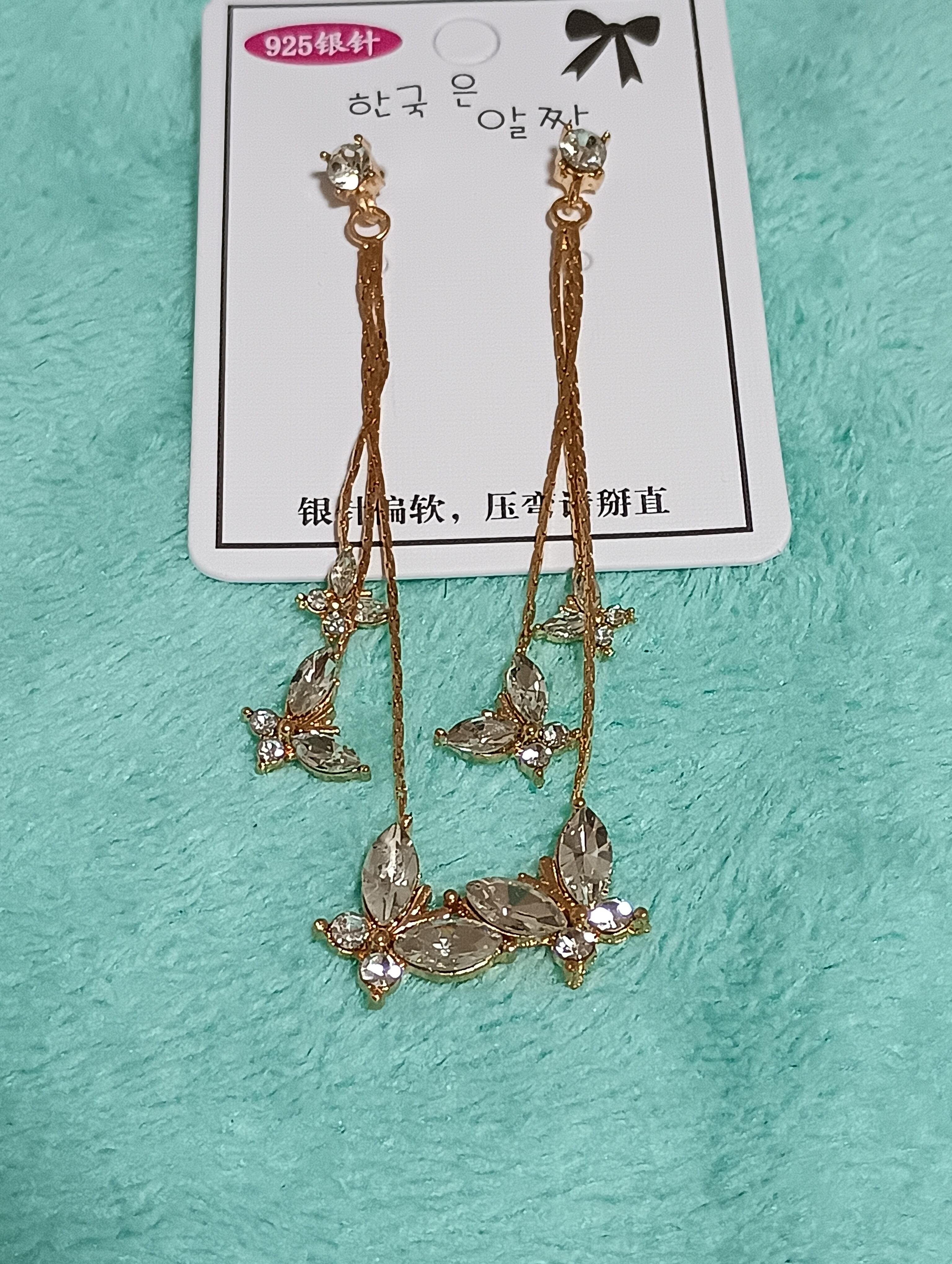 キラキラと輝きを放つ合金チェーンと蝶々をモチーフにしたロングピアス、繊細ながらもゴージャスなデザイン(^^)