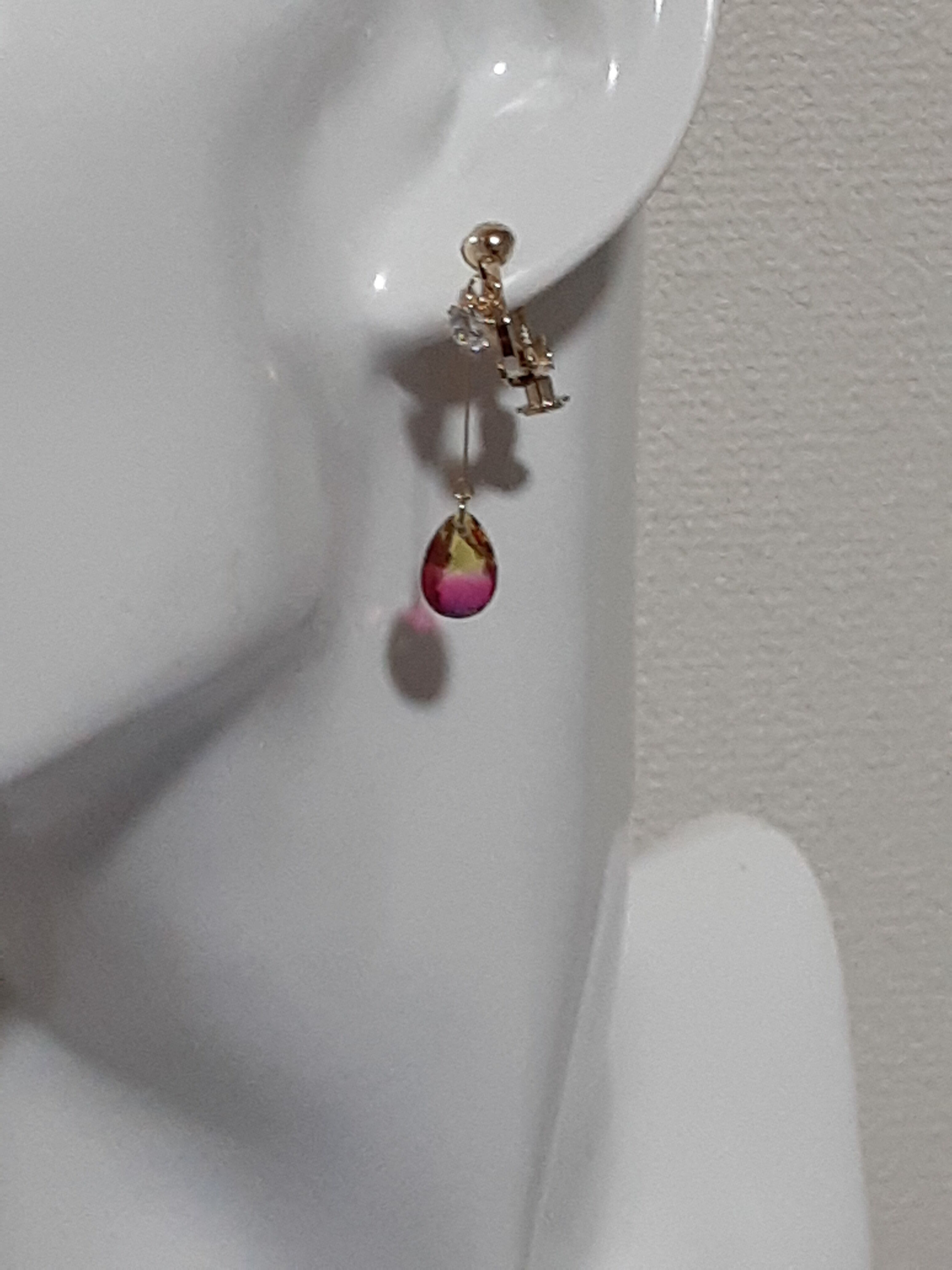 商品名:グラデーション雫型ガラスストーンイヤリング イエロー