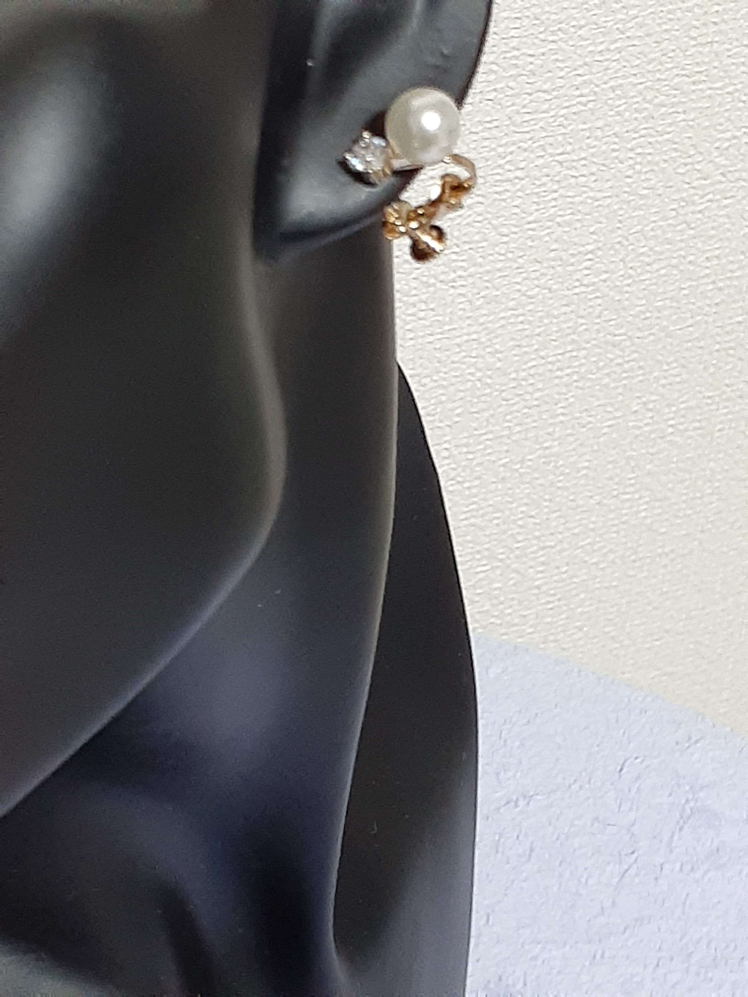 キュービックはその華やかさが高く評価され、パールはさらなる優雅さを演出します。ゴールドのフレームが全体を引き締め、シンプルながらも存在感のあるデザインが魅力です。このイヤリングは特に、フォーマルなシーンやパーティーシーンで、あなたの耳元を華やかに彩ることができるでしょう。