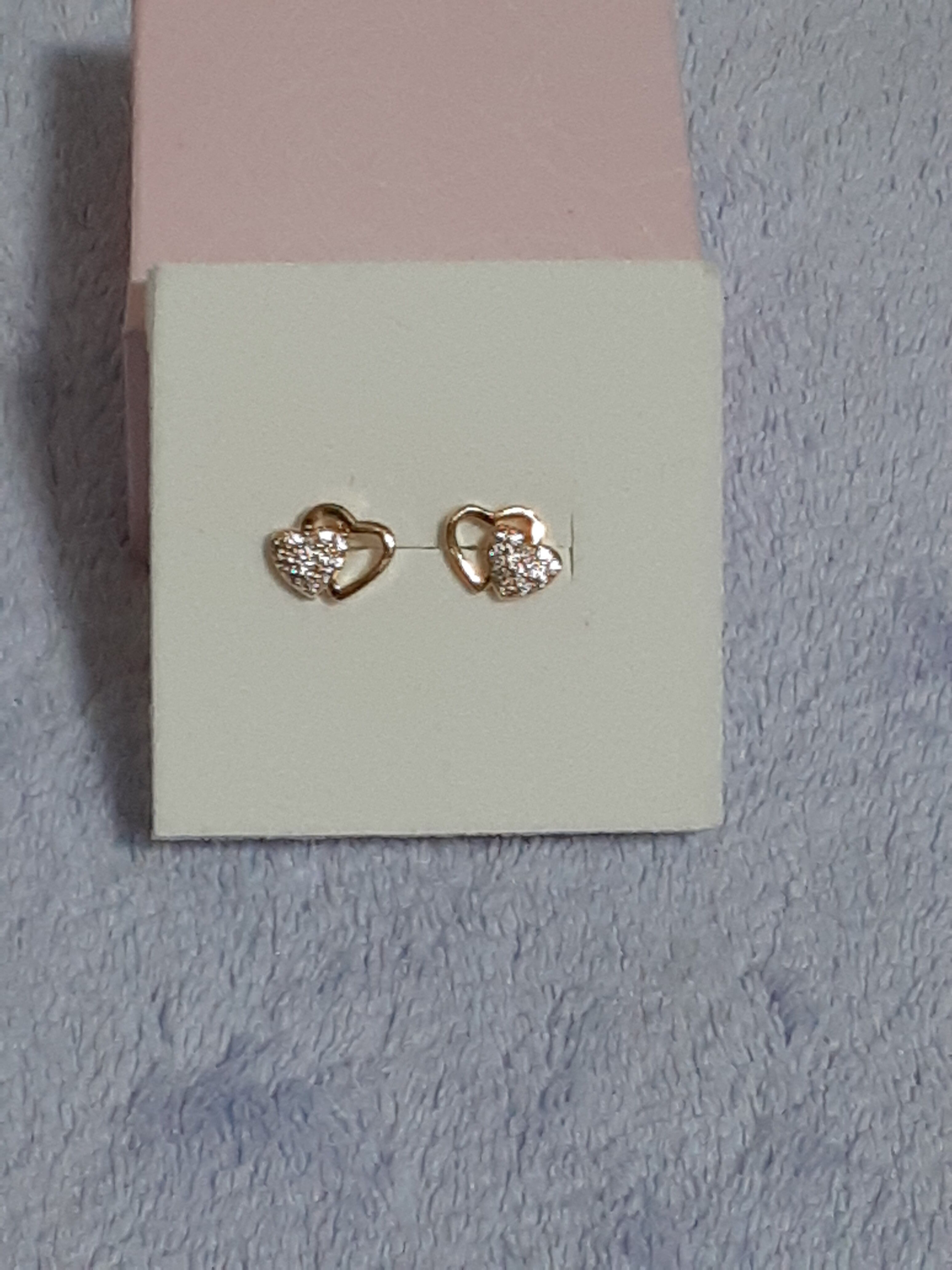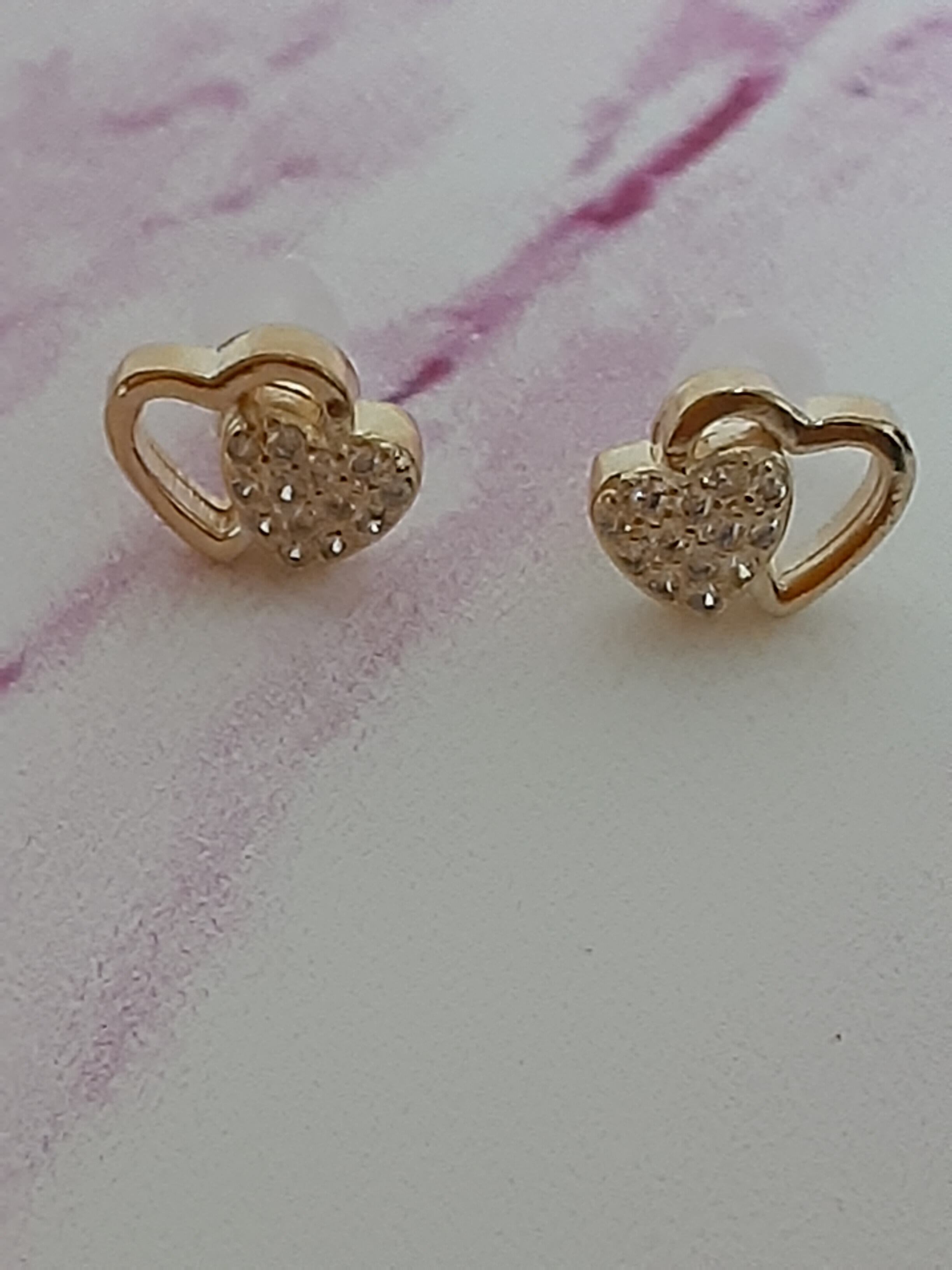 ダブルハート・キュービック樹脂ピアスは、ゴージャスな輝きが魅力的なハート型のキュービック・ジルコニアが二つ重なったデザインが特徴的で、仕上げに高級感のあるゴールドカラーを施しています。