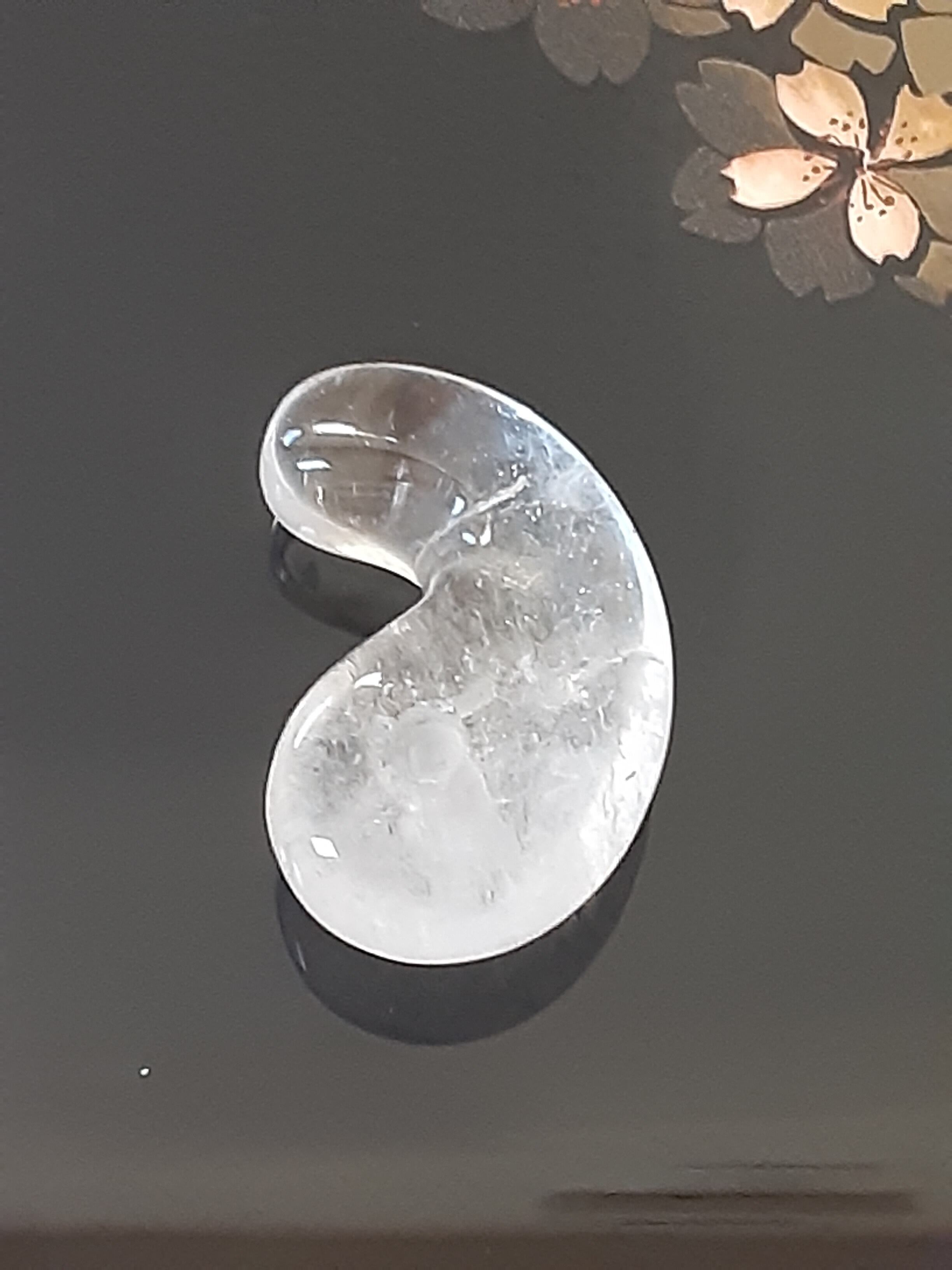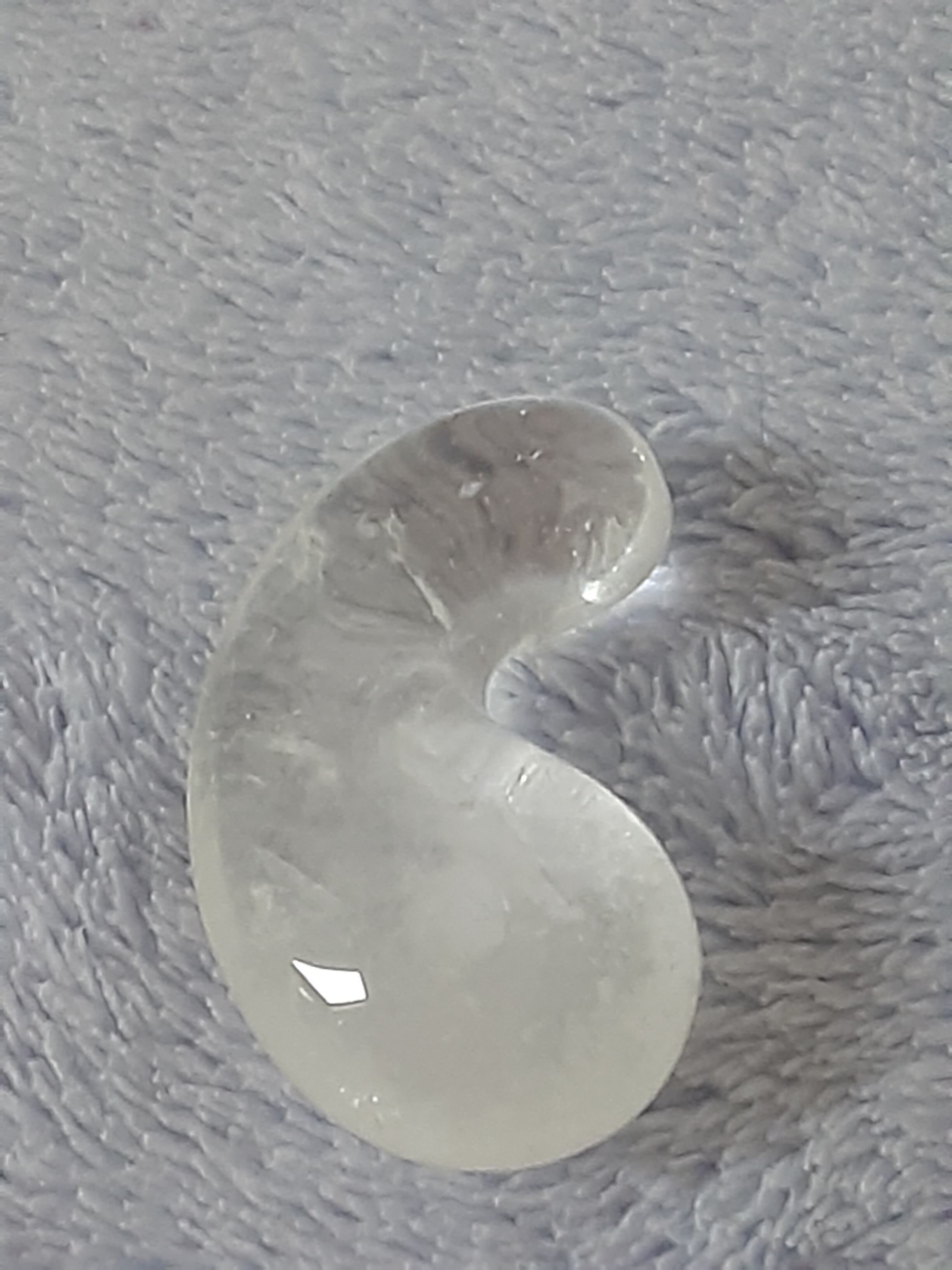 大自然から生まれたエネルギーの石、勾玉。その中でも特にパワフルな水晶を使用したパワーストーンです。35ミリメートルの大きさで存在感があり、アクセサリーにもなります。